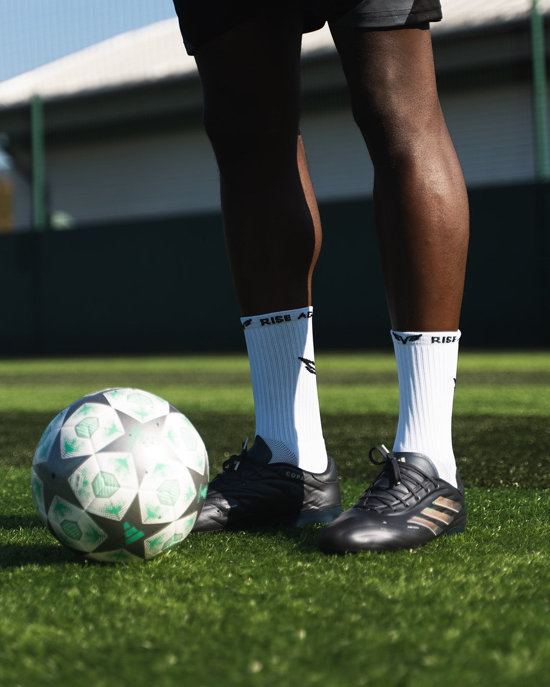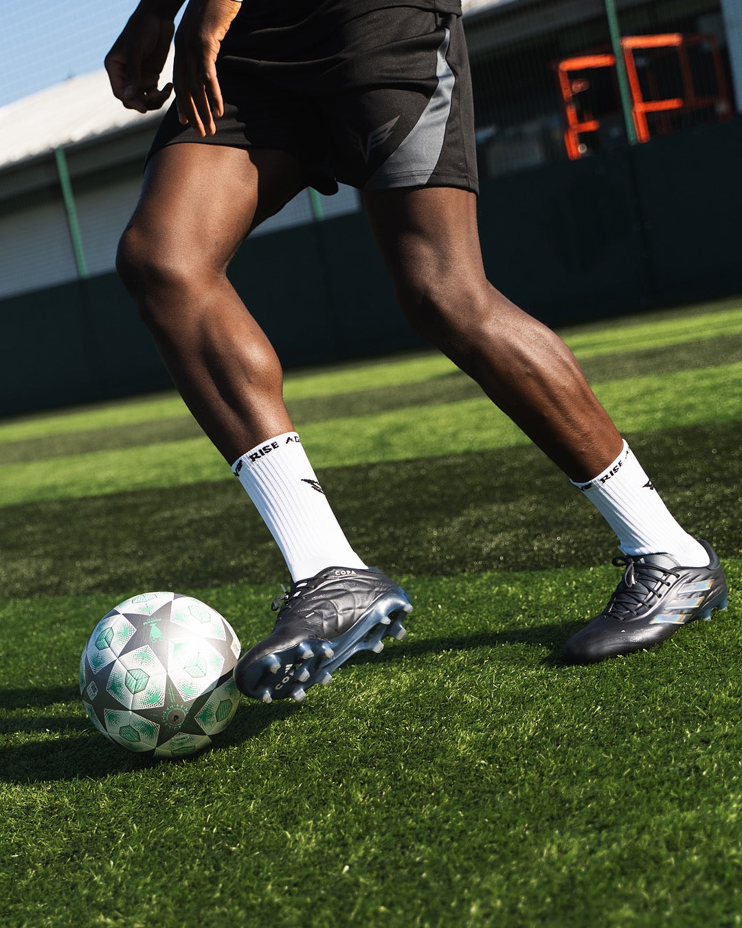 Crew length performance grip socks. Locked in comfort, reduced slippage and secures the foot. Lightweight agility fit, worn by ballers worldwide for both matchday and training.